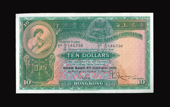 1959 香港上海滙豐銀行 $10 EF 編號:Y/J 144736