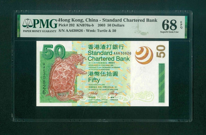 2003 香港渣打銀行$50 PMG 68 EPQ 編號: AA630826(頭版系列,頂級雪白)