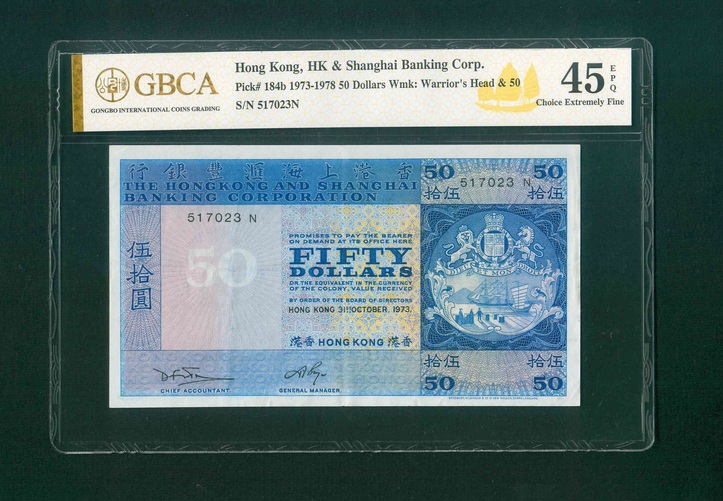 1973 香港上海匯豐銀行$50 PMG 45 EPQ 編號: 517023N