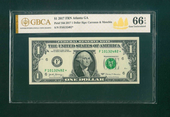 2017 美國$1 GBCA 66 EPQ 編號: F10132482*(補版系列,頂級雪白)