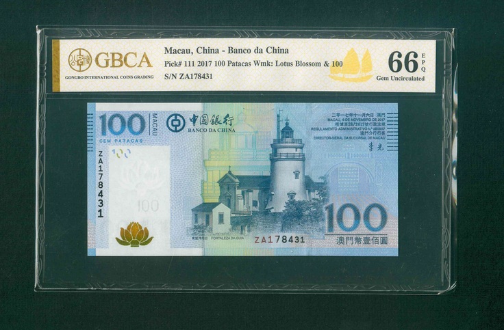2017 澳門中國銀行$100 GBCA 66 EPQ 編號: ZA178431(補版系列,頂級雪白)