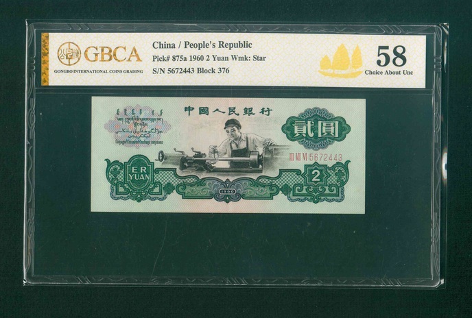 1960 中國人民銀行$2 GBCA 58 編號: 5672443