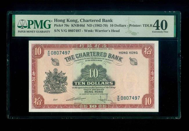 1962-70ND 香港渣打銀行 $10 PMG 40 編號:V/G 0807497