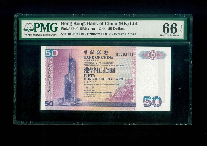 2000 中國銀行 $50 PMG 66 EPQ 編號:BC093118