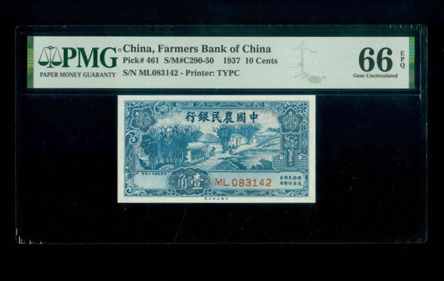 1937 中國農民銀行 壹角 PMG 66 EPQ 編號:ML083142