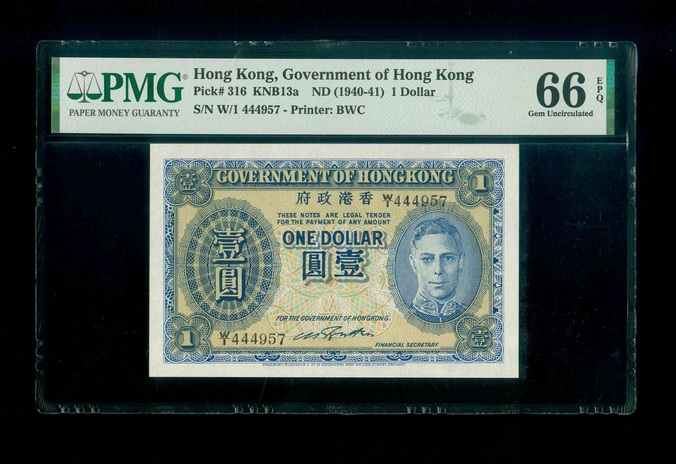 1940-41ND 香港政府 $1 PMG 66 EPQ 編號:W/I 444957