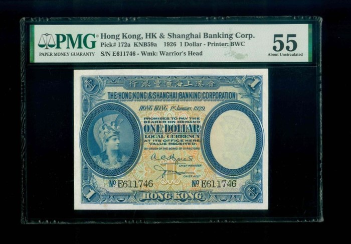 1929 香港上海滙豐銀行 $1 PMG 55 編號:E611746(PMG錯標-年份)
