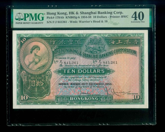 1955 香港上海滙豐銀行 $10 PMG 40 編號:F/J 841261