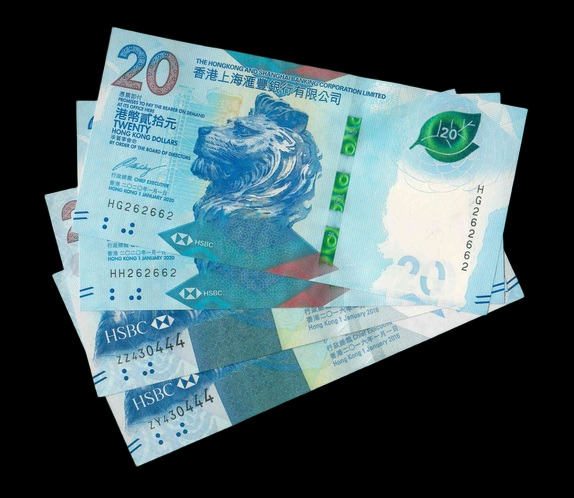 2016/2020 香港上海滙豐銀行 $20 UNC 編號: HG262662...(共4張,各2組同號,含補版豹子,頂級雪白)