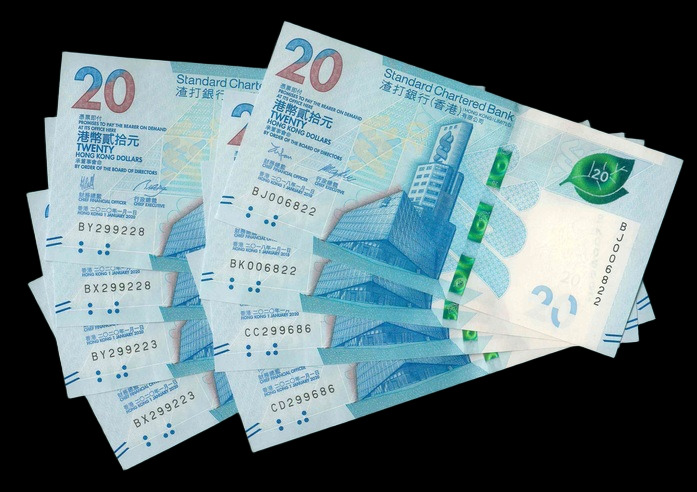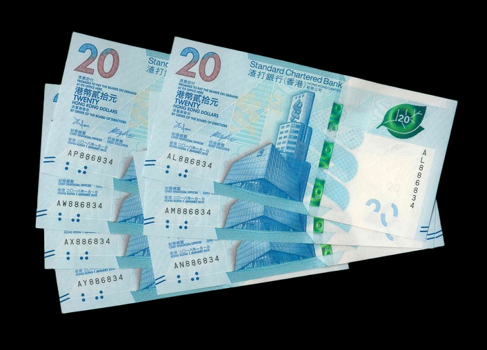 2018 香港渣打銀行 $20 UNC 編號: AL886834...(共7張,同號,頂級雪白)