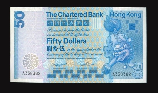 1979 香港渣打銀行$50 EF 編號: A338382(頭版系列)