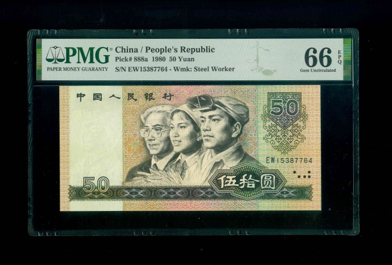 1980 中國人民銀行$50 PMG 66 EPQ 編號: EW15387764(頂級雪白)