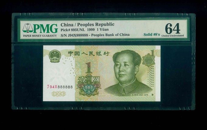 1999 中國人民銀行 $1 PMG 64 編號:J94X888888(幸運全8)