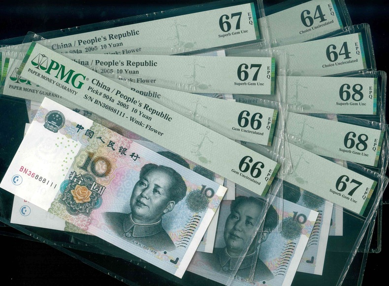 2005 中國人民銀行 $10 PMG 64-68 EPQ 編號:BN36888111-9000(共9張,含雙豹/豹子步步高)