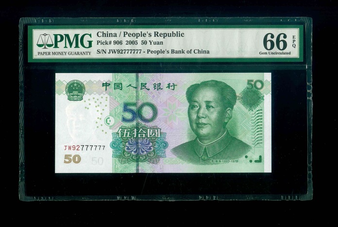 2005 中國人民銀行 $50 PMG 66 EPQ 編號:JW92777777(頂級雪白)