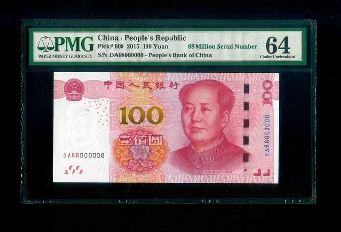 2015 中國人民銀行 $100 PMG 64 編號:DA88000000(88萬號,頂級雪白)