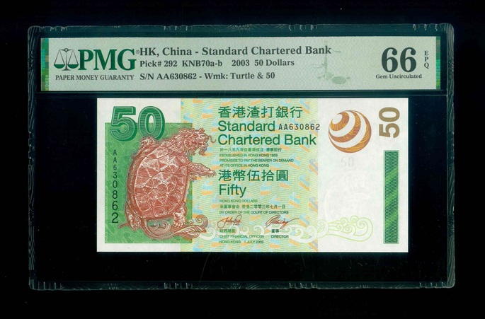 2003 香港渣打銀行 $50 PMG 66 EPQ 編號:AA630862(頭版系列,頂級雪白)