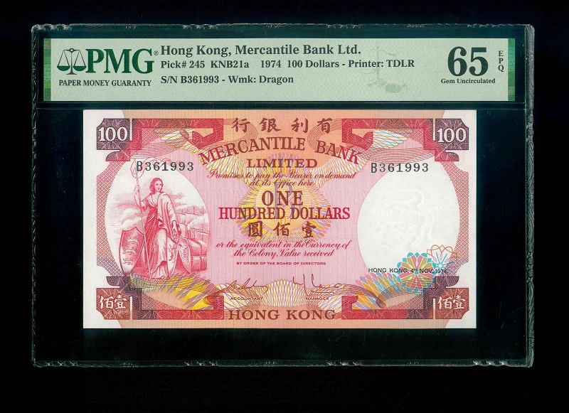 1974 香港有利銀行 $100 PMG 65 EPQ 編號:B361993(頂級雪白)