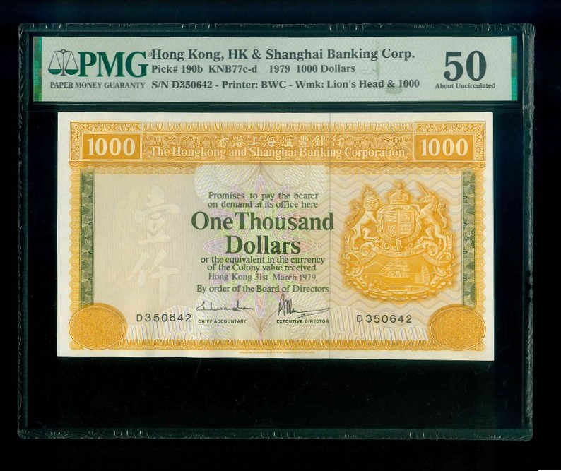1979 香港上海滙豐銀行 $1000 PMG 50 編號:D350642(紙胆系列)