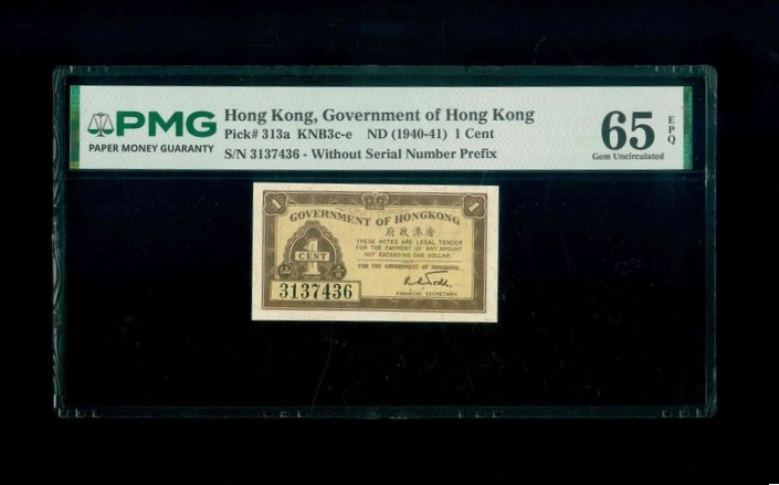 1940-41ND 香港政府 壹仙 PMG 65 EPQ 編號:3137436