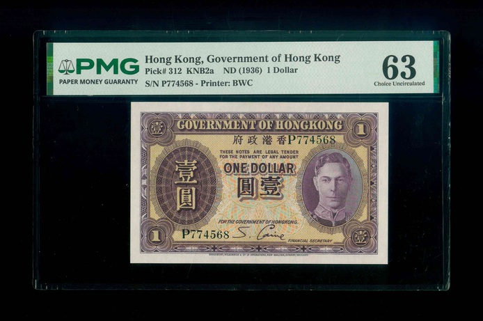 1936ND 香港政府 $1 PMG 63 編號:P774568
