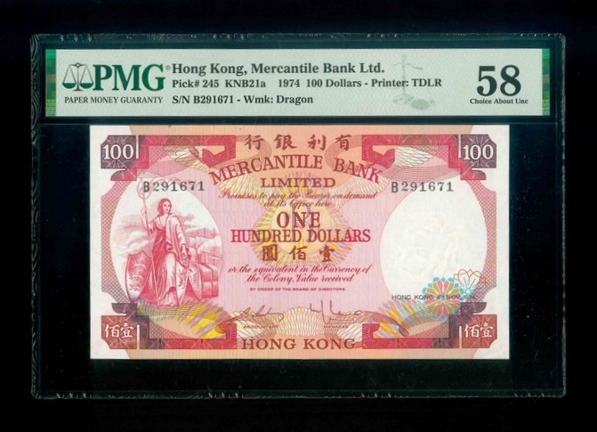 1974 香港有利銀行 $100 PMG 58 編號:B291671