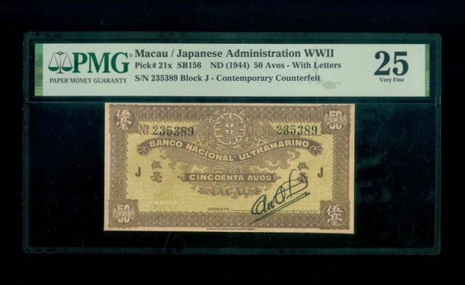 1944ND 澳門大西洋銀行(二戰日佔時期) 50 Avos PMG 25 編號:235389