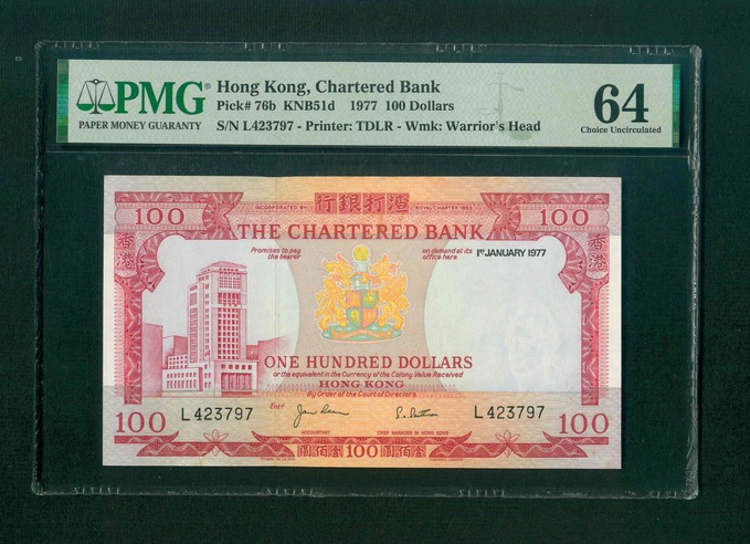 1977 香港渣打銀行 $100 PMG 64 編號: L423797