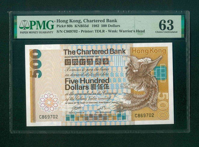 1982 香港渣打銀行 $500 PMG 63 編號: C869702