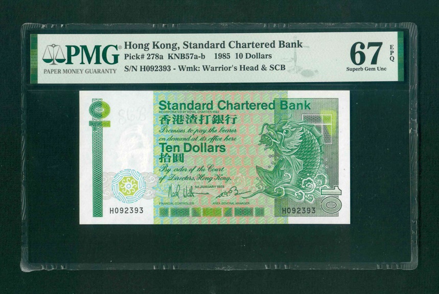 1985 香港渣打銀行$10 PMG 67 EPQ 編號: H092393(頂級雪白)