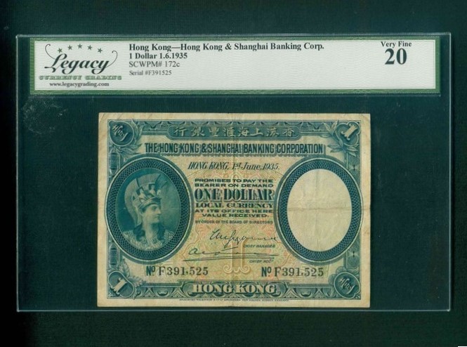 1935 香港上海滙豐銀行 $1 Legacy 20 編號: F391525