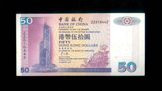 1996 中國銀行 $50 EF 編號:ZZ010442(補版系列)