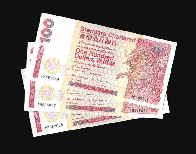 1999 香港渣打銀行 $100 AU 編號:FMFM589086-88(共3張,連號)