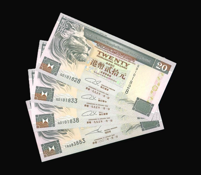 1995/2002 香港上海滙豐銀行 $20 UNC 編號:GD101828…(共4張,趣味號)