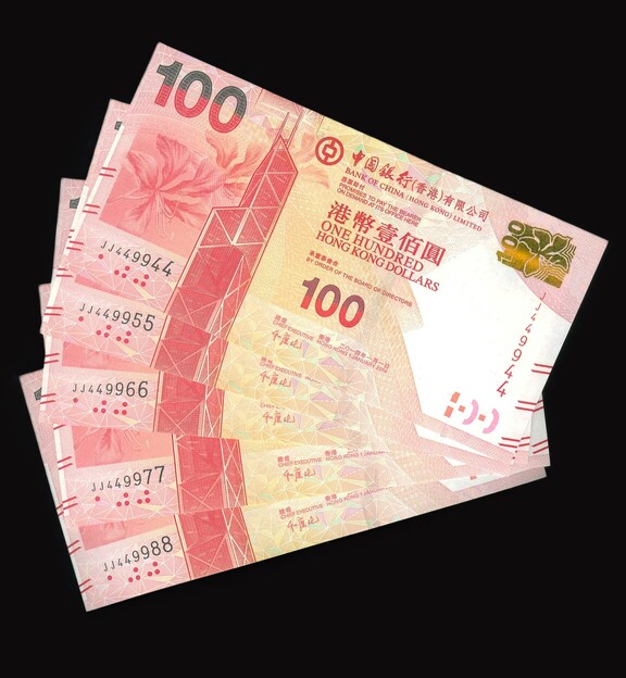 2014 香港中國銀行 $100 UNC 編號:JJ449944-88(共5張,四對子步步高)
