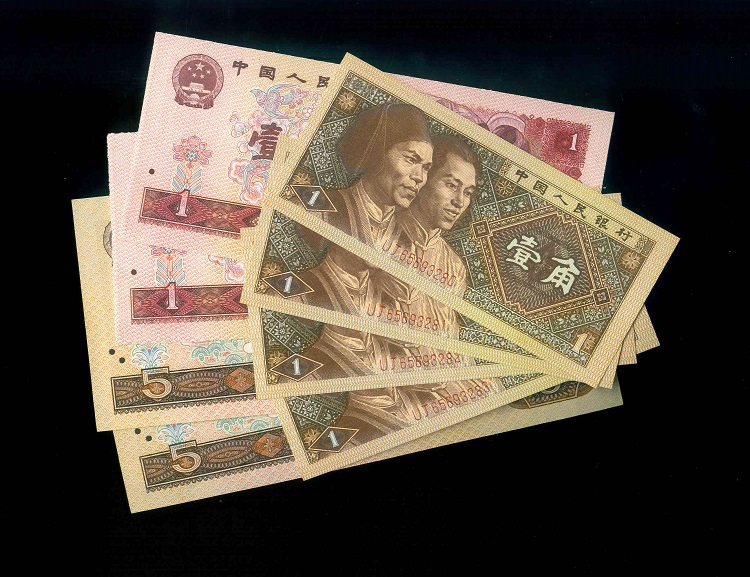 1980 中國人民銀行 壹角x4 $1x2 $5x2 UNC 編號:UJ65693280-83…(共8張,含連號)