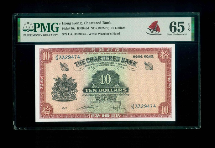 1962-70ND 香港渣打银行 $10 PMG 65 EPQ 編號: U/G 3329474(頂級雪白)
