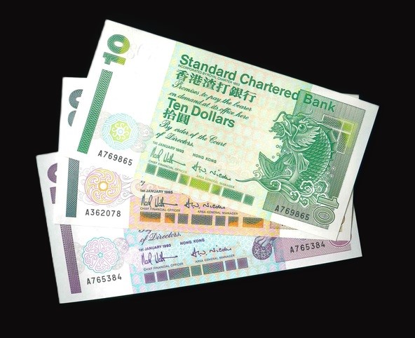 1993 香港渣打銀行 $10 $20 $50 UNC 編號:A769865…(共3張,單冠號)