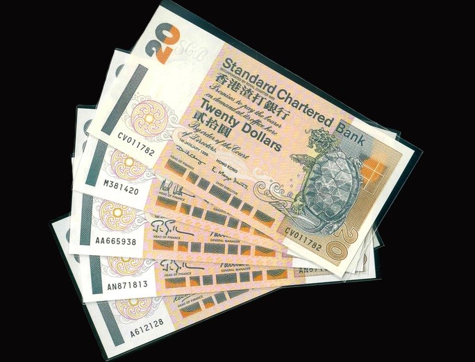 1994-98 香港渣打銀行 $20 UNC 編號:CV011782…(共5張,含頭版)