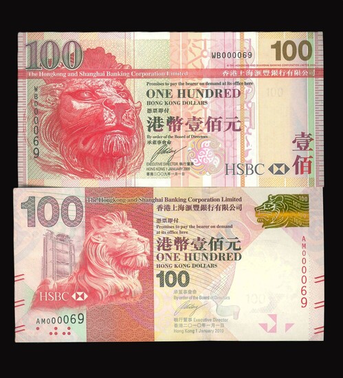 2009/2010 香港上海滙豐銀行 $100 UNC 編號:WB/AM 000069(共2張,同號)