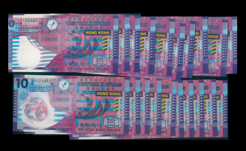 2003/2007 香港特區政府 $10 UNC 編號:NJ123491-500/NK123491-500(共20張,2組各同,連號)