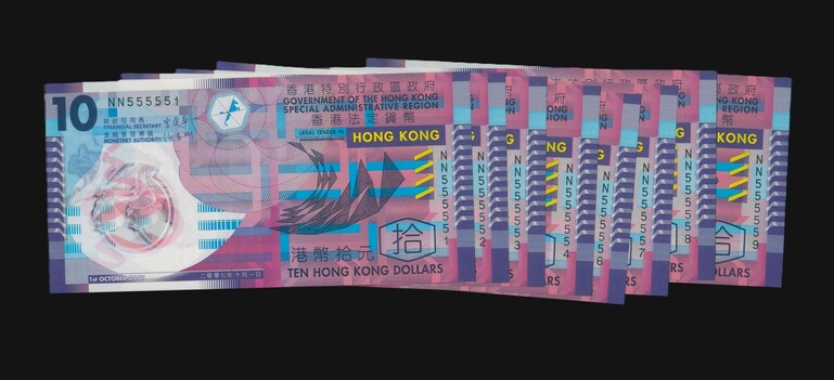 2007 香港特區政府 $10 UNC 編號:NN555551-9(共8張,連號)