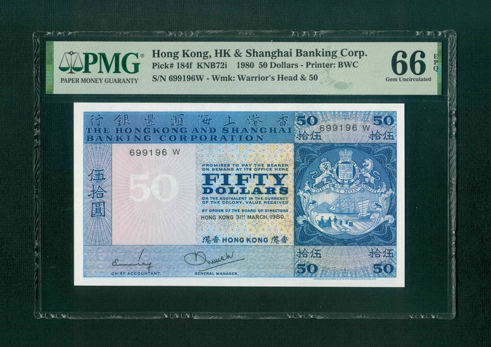 1980 香港上海滙豐銀行 $50 PMG 66 EPQ 編號:699196 W