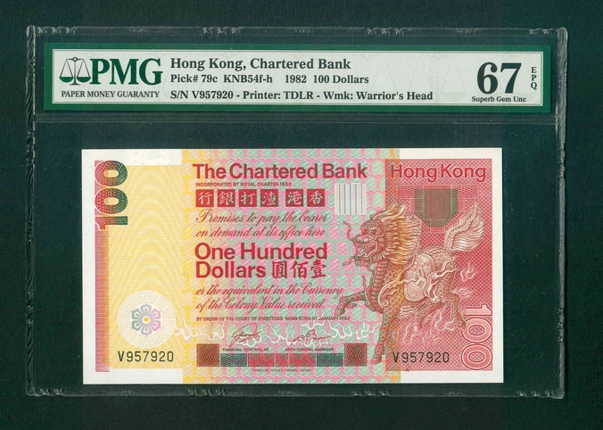 1982 香港渣打銀行 $100 PMG 67 EPQ 編號: V957920