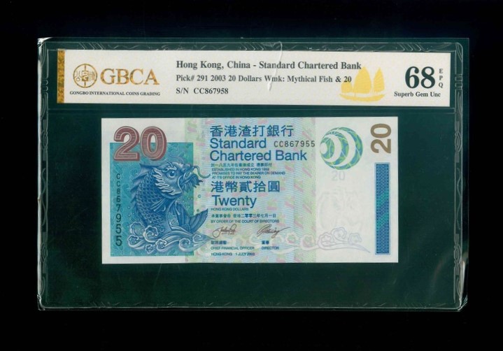 2003 香港渣打銀行 $20 GBCA 68 EPQ 編號: CC867955(頂級雪白)