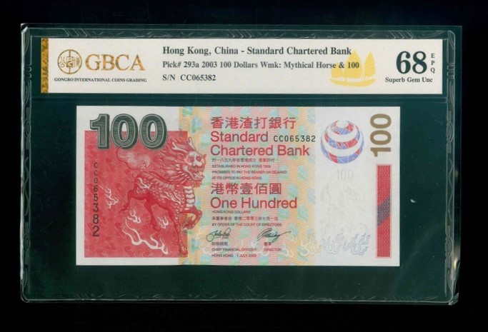 2003 香港渣打銀行 $100 GBCA 68 EPQ 編號: CC065382(頂級雪白)