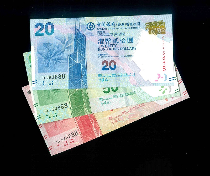 2013-14 香港中國銀行$20-$100 UNC 編號: CF963888…(豹子8,頂級雪白,共3張)