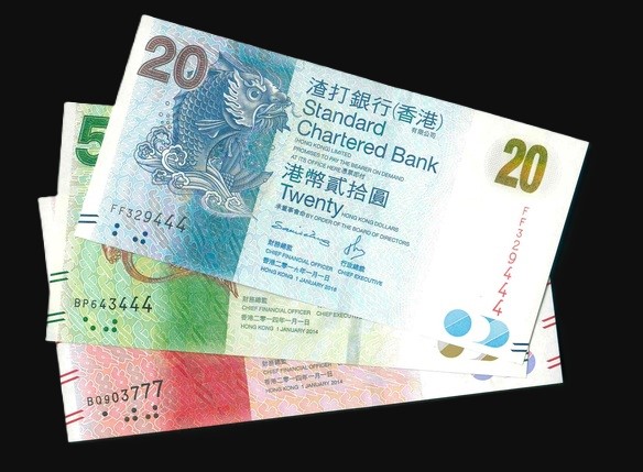 2014-16 香港渣打銀行$20-$100 UNC 編號: FF329444…(豹子號,頂級雪白,共3張)