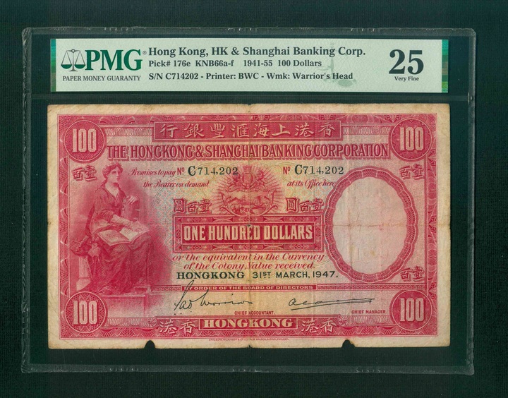 1947 香港上海滙豐銀行 $100 PMG 25 編號: C714202