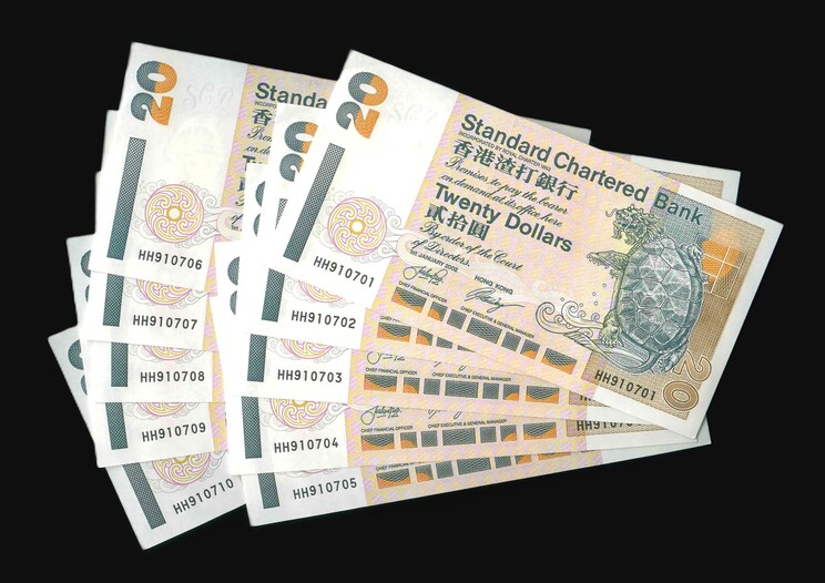 2002 香港渣打銀行 $20 AU-UNC 編號:HH910701-710(十連號)
